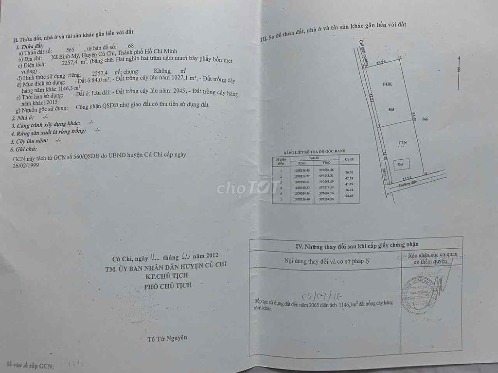 + Vị trí đẹp. Ngay cầu Rạch Tra đi vào 350m + Diện tích: 2.257m2 (27m x 84m) -Thổ cư 84m2